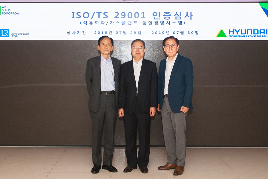 ISO/TS 29001 인증을 획득한 현대건설은 석유화학 및 가스플랜트 EPC 사업을 위한 품질경영시스템의 국제적 수준을 인정 받아, 향후 글로벌 플랜트 공사 수주에 대한 경쟁력을 확보하게 되었습니다.